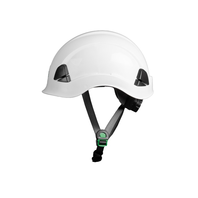 Caractéristiques : Coque en ABS, Coiffe en PE-LD, Harnais de suspension 6 points textile en polyester, Garniture frontale textile, Jugulaire 3 points en polyester résistance entre 15 et 25 daN, Fentes latérales pour coquilles antibruits, Clips pour lampe frontale