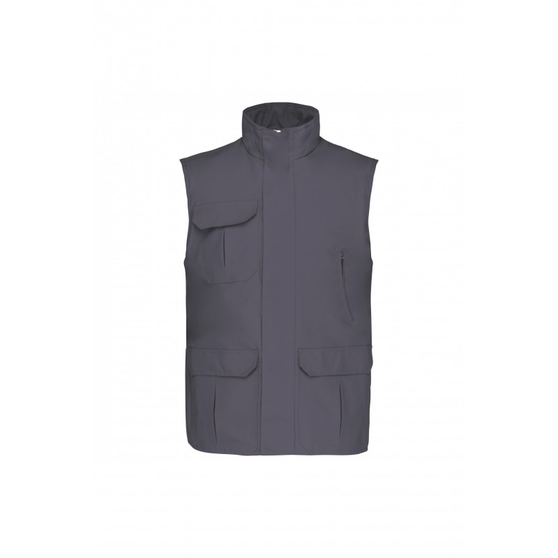 100 % polyester. Extérieur : 100% polyester Oxford avec enduction PVC. Doublure matelassée avec ouate 100% polyester. Fermeture zippée sous patte pressionnée. 4 poches extérieures (3 poches rabat et une poche zippée). Bande de serrage élastique avec stoppeurs à l'emmanchure (cachée). 2 poches intérieures (1 zippée et 1 pour le téléphone portable). Ouverture par zip intérieur pour personnalisation.